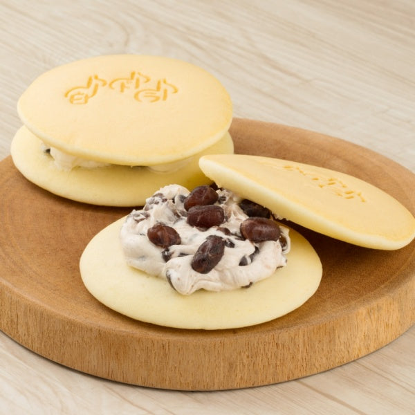 北海道産の小麦、砂糖を使用した白い皮のどら焼き「白どら」です。粒を残して炊き上げた小豆を入れたバタークリームが生地と良く合います。
