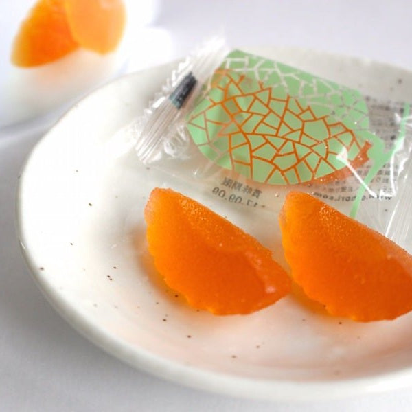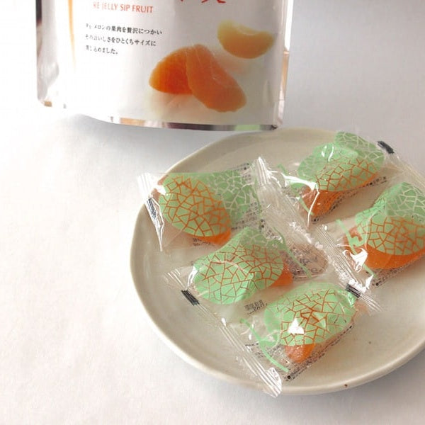 [Raw materials] 水飴、砂糖、メロン果肉、レモン果汁、洋酒、トレハロース、ゲル化剤(ペクチン)、乳化剤、酸味料、香料、着色料(赤102、赤106、黄4、黄5)
