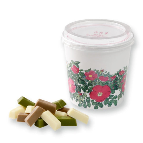 はまなしの花柄パッケージに入った、ひと口サイズのチョコレ-トです。 ホワイト、コ-ヒ-味のモカホワイト、抹茶ホワイトの3つの味を詰め合わせました。