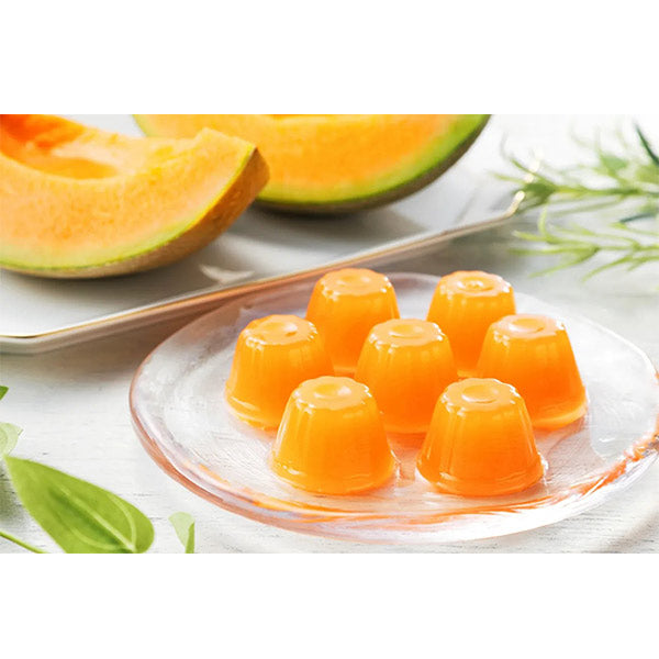 [Raw materials] メロン果汁(国内製造)、砂糖、果糖、ぶどう糖、砂糖混合異性化液糖、洋酒、脱脂粉乳/ゲル化剤(増粘多糖類)、酸味料、香料、パプリカ色素、着色料(カロチン)、(一部に乳成分を含む)