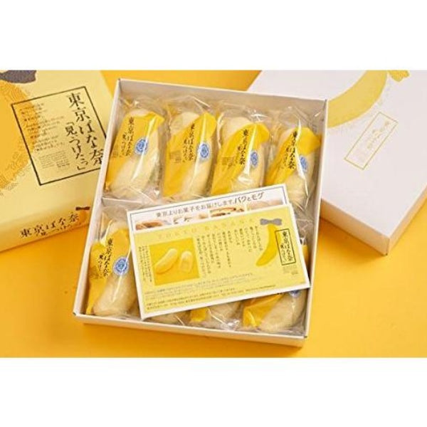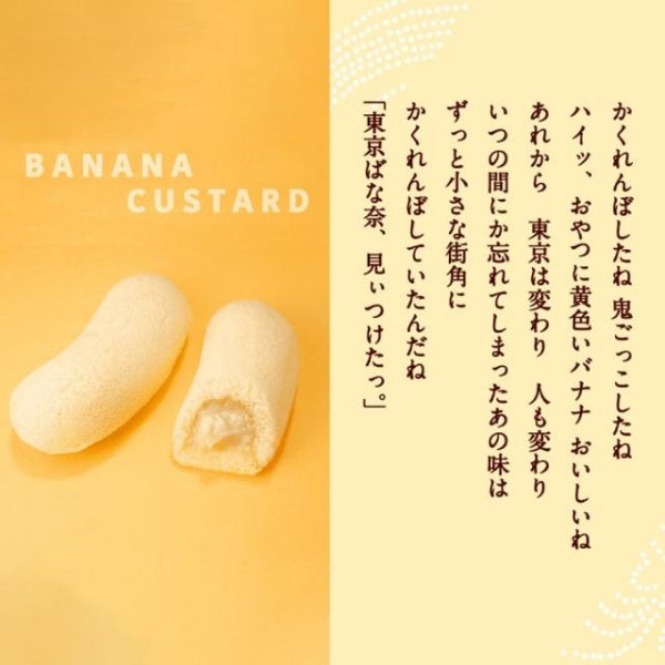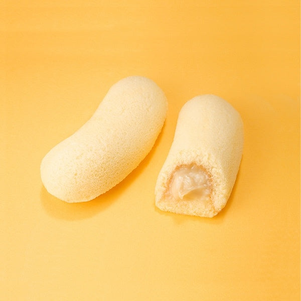 [Raw materials] バナナクリーム(水あめ、バナナペースト、砂糖、バナナピューレ、植物油脂、脱脂粉乳、卵黄、小麦粉、ゼラチン、保存料(ソルビン酸K))(国内製造)、液卵、砂糖、小麦粉、植物油脂、乳化油脂、乾燥卵白/加工デンプン、調味料(アミノ酸)、ソルビトール、乳化剤(大豆由来)、膨張剤、ph調整剤、グリシン、香料、カロテノイド色素、(一部に小麦・卵・乳成分・大豆・ゼラチン・バナナを含む)
