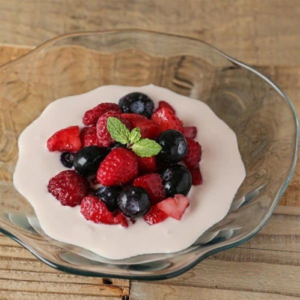 独自の低温発酵による製法で、濃厚で酸味の少ないとろりとした味わいに仕上げました。生きたまま腸まで届く、お腹にやさしいプロバイオティクス菌(アシドフィラス菌)を配合しています。もも果汁の甘酸っぱさ、フレッシュ感の強いストロベリーに、アントシアニンを含むブラックカーラントの酸味とコクが融合した新しいベリーの風味をお楽しみ頂けます。アクセントにローズ水を加えることで、ベリーの華やかな香りを引き立たせました。