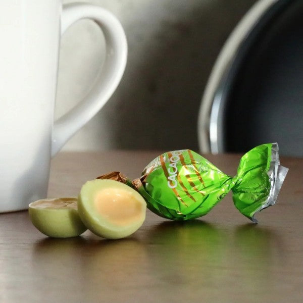 [Raw materials] チョコレート(砂糖、ココアバター、全粉乳)(国内製造)、食用やし油、ショートニング、夕張メロンパウダー、食用精製加工油脂、油脂加工食品、レモン果汁パウダー、食用植物油脂、クロレラパウダー/乳化剤、香料、カロチノイド色素、酸化防止剤(V.E)、レシチン、(一部に乳成分・大豆を含む)