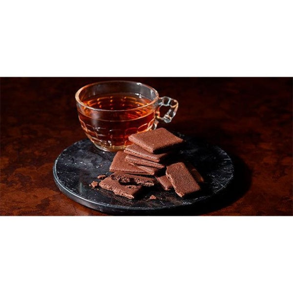 花のように芳しいダージリンの香りをチョコレートにまとわせて、サクサクの香ばしいココアクッキーでサンドしました。