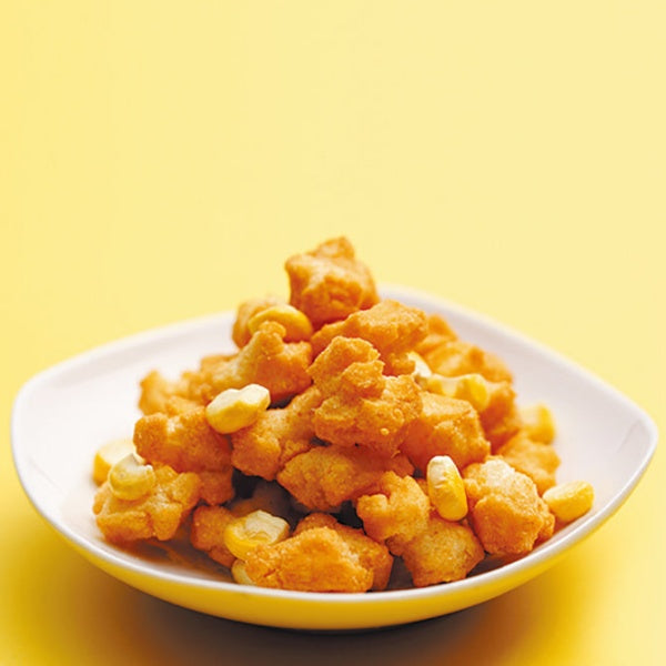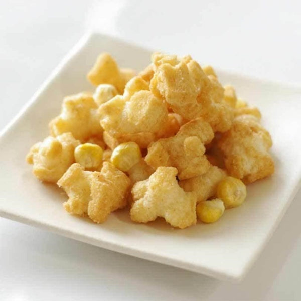[Raw materials] 水稲もち米(日本)、植物油脂、乾燥スイートコーン、スイートコーンパウダー、ローストコーンシーズニング、調味料(アミノ酸等)、香料、カラメル色素 、甘味料(スクラロース)、酸味料、(原材料の一部に小麦、大豆、鶏肉を含む) ※予告なく変更になる場合がございます