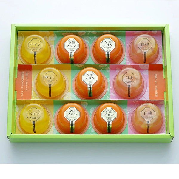 【 内容量 】夕張メロンゼリー90g×5個、パインゼリー90g×3個、白桃ゼリー90g×3個