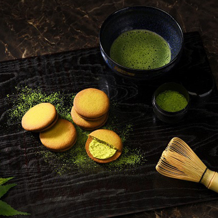 【 原材料 】小麦粉(国内製造)、調整バター(バター、砂糖)、砂糖、卵白、 マーガリン、ファットスプレッド(植物油脂、バター)、ホワ イトチョコレート、ショートニング、抹茶、でん粉分解物、洋 酒/乳化利 、膨張剤 、香料 、(一部に小麦、 乳成分、 卵、 大豆を含む)